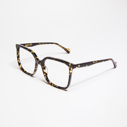 Montura cuadrada con un puente ligeramente elevado que estiliza el rostro y aporta ligereza visual. Su forma definida pero femenina la convierte en una opción muy versátil, desde lo profesional hasta lo creativo.
