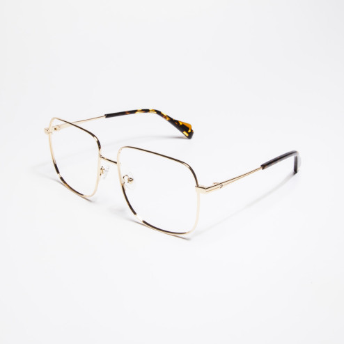 Diseño de forma cuadrada amplia y ángulos suavizados que envuelven el rostro con armonía. La ligereza del metal se fusiona con terminales de acetato ecológico para un confort prolongado. Un modelo que aporta carácter sin perder elegancia, perfecto para quienes aprecian un toque vintage actualizado.