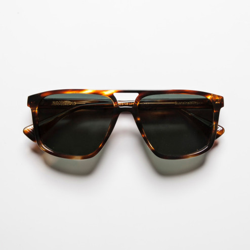 Fabricada en acetato ecológico de alta calidad, combina resistencia y ligereza en una pieza equilibrada y confortable. Su acabado pulido realza la profundidad del material, aportando brillo y textura con un aspecto atemporal.