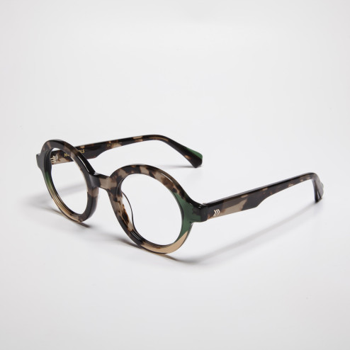 Su silueta redonda transmite personalidad y estilo, mientras que su combinación de colores aporta un toque moderno y distintivo. Cada gafa está fabricada de manera artesanal con acetato orgánico, un material sostenible derivado de fibras de algodón que cuida el medio ambiente sin renunciar a la calidad y durabilidad.