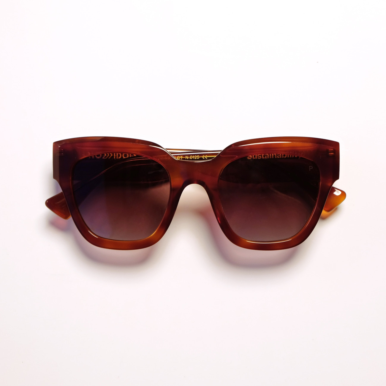 Ce modèle est fabriqué en acétate organique et biodégradable, issu de fibres de coton. Cela permet de réduire considérablement l’utilisation de matériaux fossiles et les émissions de CO₂ lors de sa fabrication.